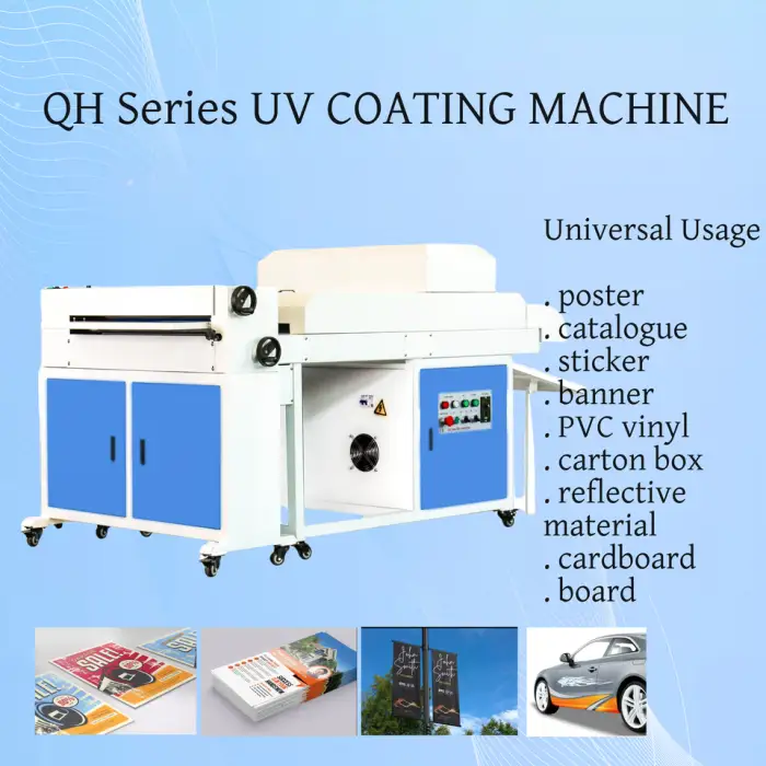 The DOUBLE 100 UV Coating Machine is suitable for various materials, including plastic, paper, and metal.