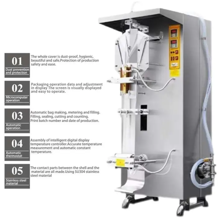 This machine is particularly beneficial for the food industry and beverage packaging, as well as any business that requires bagged liquid product filling.