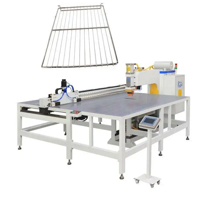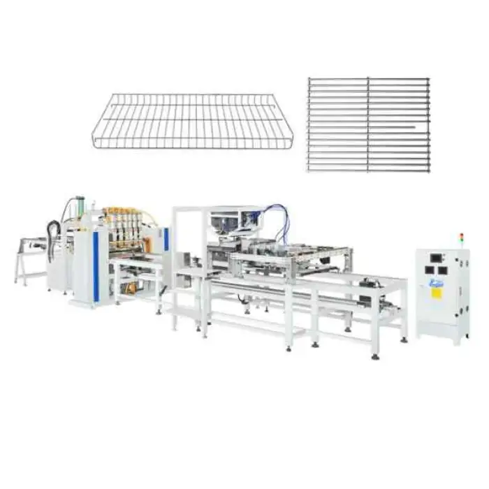 This machine is used for manufacturing wire shelves, creating fencing products, producing wire mesh for construction and agriculture, designing custom wire products, and fabricating components for transportation and logistics.