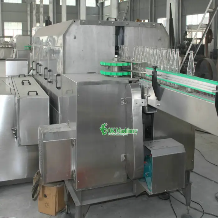 The Automatic Wine Beer Bottle Washer and Drying Machine operates at 25KW of power.