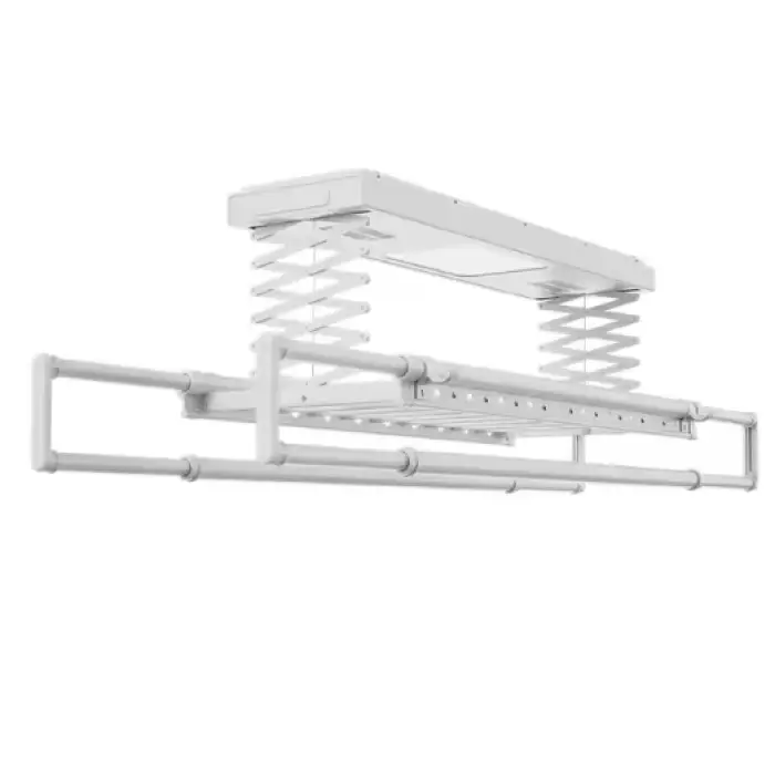 The drying rack is ceiling mounted, making it ideal for laundry rooms, halls, and balconies.