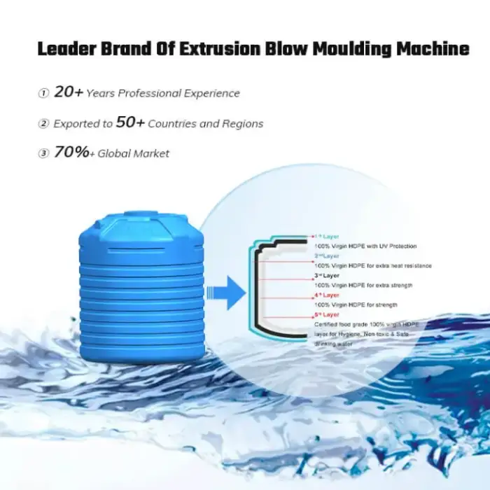 This machine is suitable for manufacturing plastic water tanks, producing containers for various liquids, and creating durable storage solutions in industrial and commercial settings.