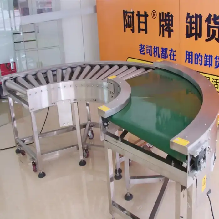 The conveyor machine is made from durable materials including stainless steel and carbon steel.