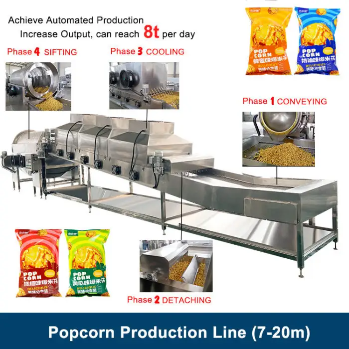 The machine has a production capacity of 60-80 kg/h, making it suitable for high-demand popcorn production.