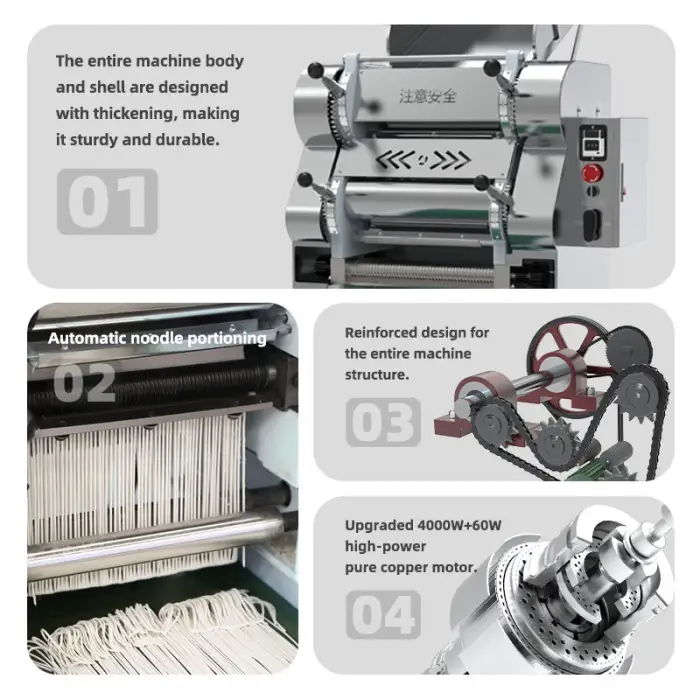 The machine is ideal for restaurants, food processing units, catering businesses, noodle shops, and even cooking classes and culinary schools.