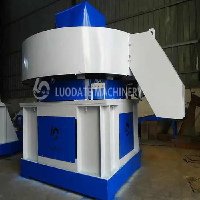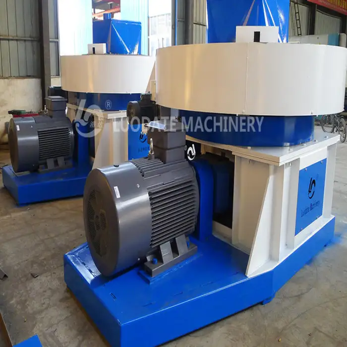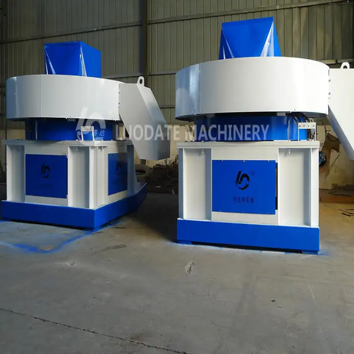 The machine is designed to work with sawdust and other biomass materials, including agricultural waste like straw and hay.