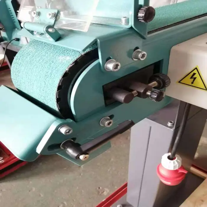 This belt sander is designed primarily for polishing metal surfaces, but it can also be used on various materials, depending on the application.