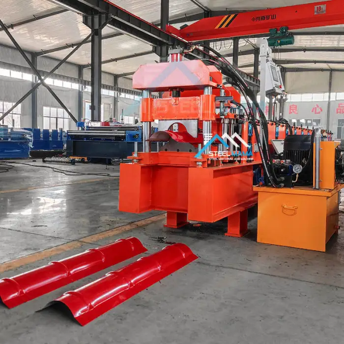 This machine is suitable for manufacturing ridge cap sheets for roofing, construction projects, metal roofing installations, and producing colored steel roofing materials.