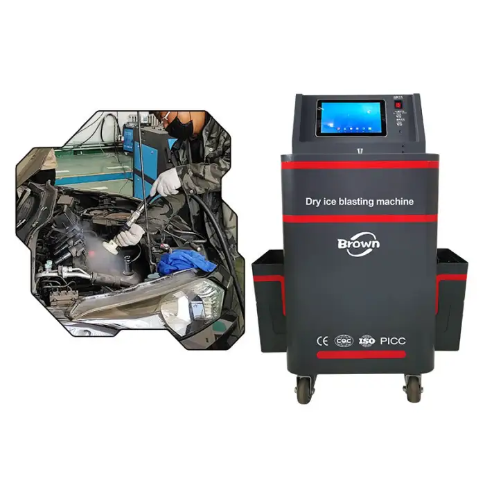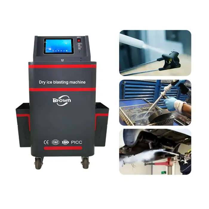 The Car Cleaner Dry Ice Blasting Machine is used for effective cleaning in automotive, industrial equipment cleaning, restoration of historical artifacts, food industry equipment sanitation, and general surface cleaning.