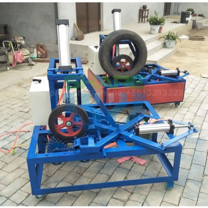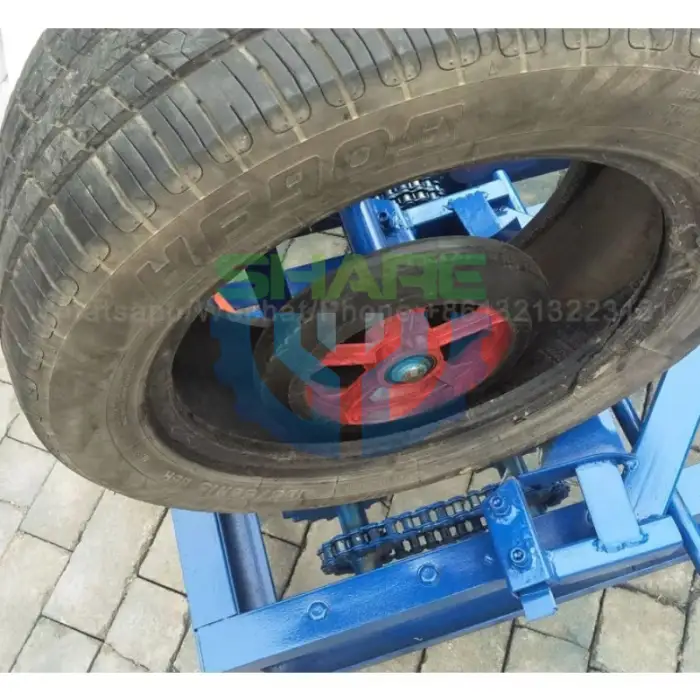 This is a Tire Bead Cutting Machine designed for recycling waste tires by cutting their sidewalls.