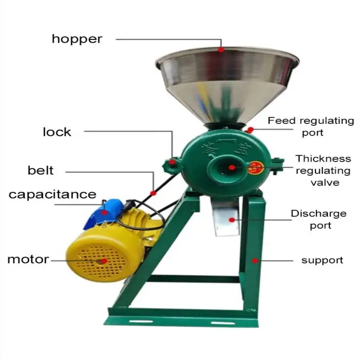 This machine is designed to grind various grains, including cassava, as well as to make flour from other types of grains.