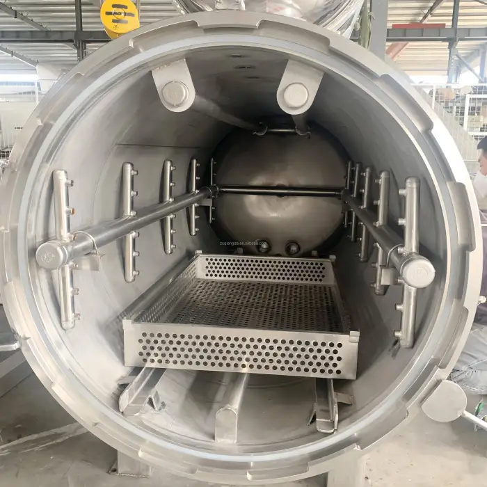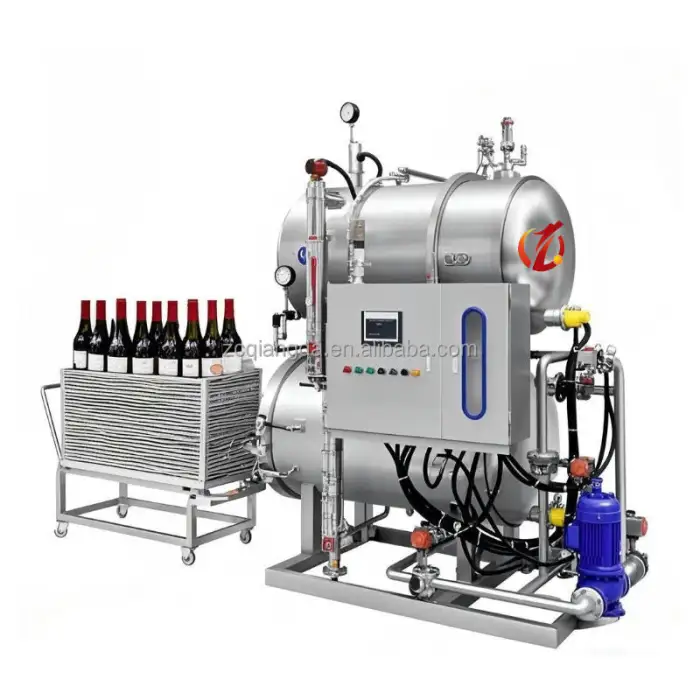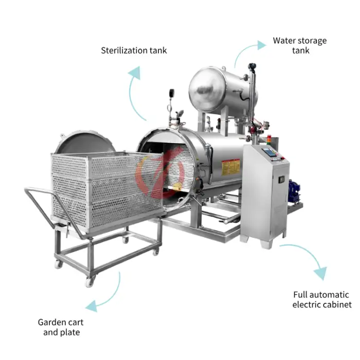 This machine is ideal for various food products, particularly canned goods, but it can also be used for sterilizing other food items in suitable containers.