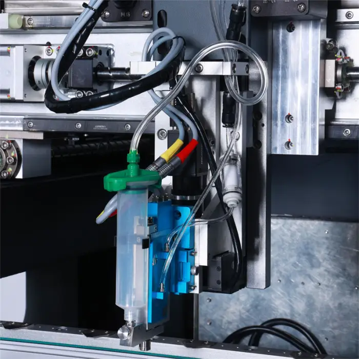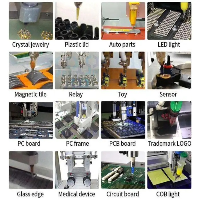 This machine is suitable for industries that require high precision in adhesive application, including electronics manufacturing and PCB assembly.