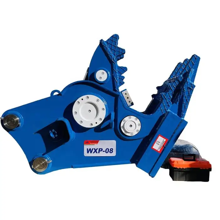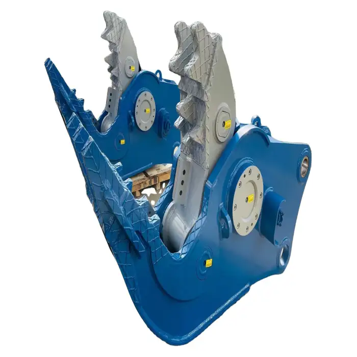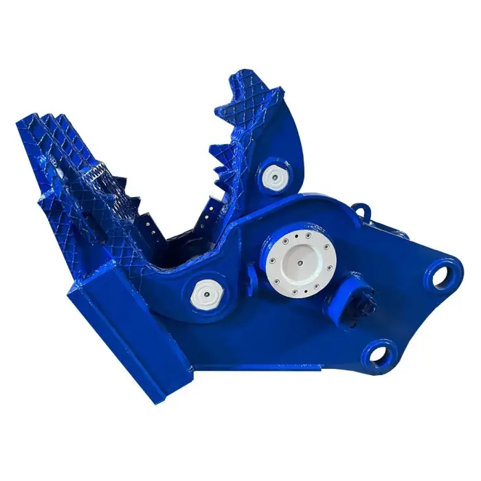 This excavator is designed to crush reinforced concrete, shear metal, and pulverize various debris.