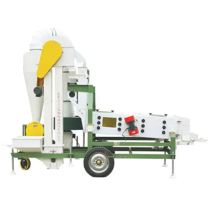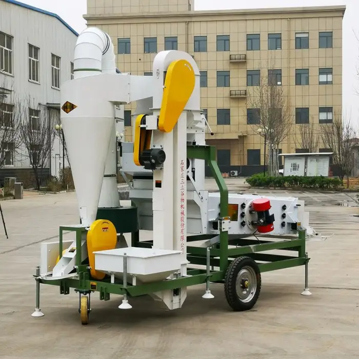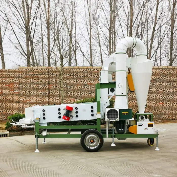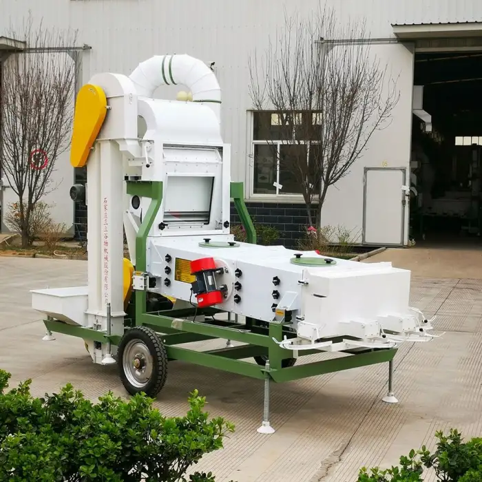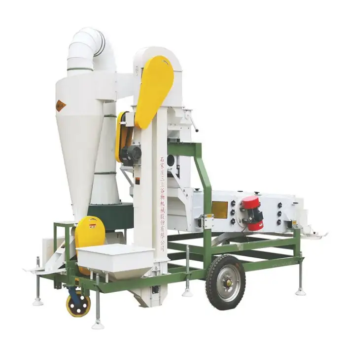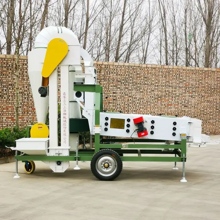 The machine has three layers of screen, which helps in effectively separating impurities from the seeds.