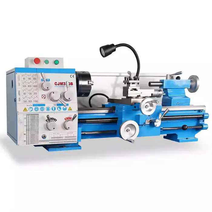 The CJM320B Mini Lathe Machine features a powerful 1.1KW motor for efficient performance.