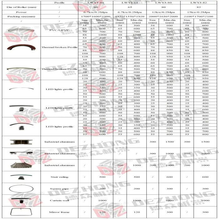 The machine can handle profiles with a maximum width of 150mm.