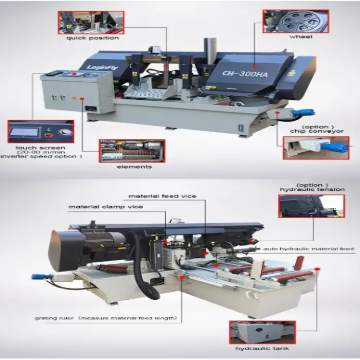 The CNC Horizontal Machinery Equipment can cut round metal up to 300mm in diameter and square metal up to 300x300mm.