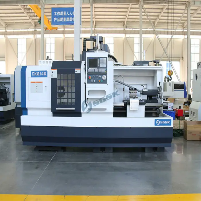 The CK6140 CNC lathe offers stepless speed change for flexible machining.