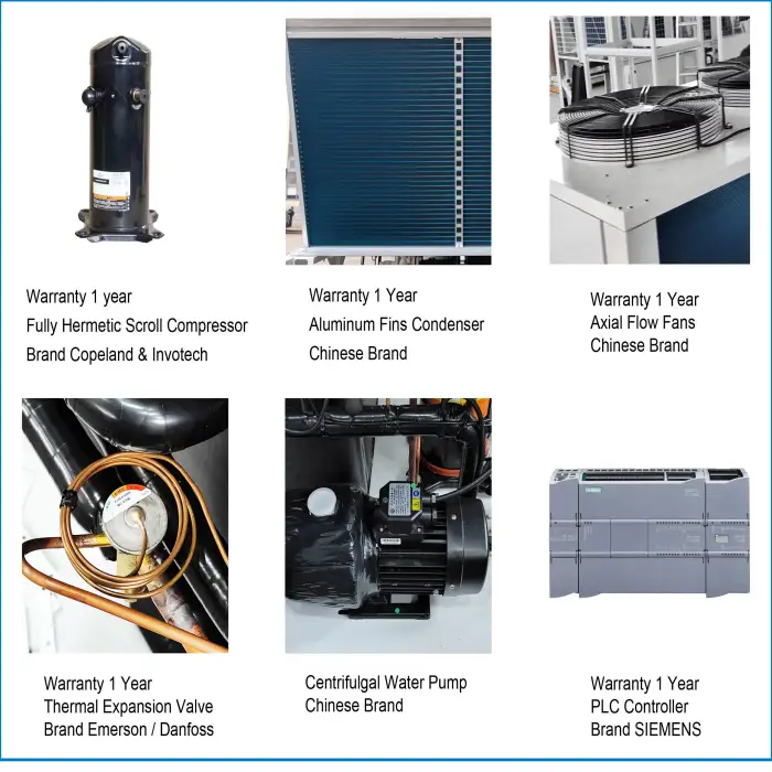 The chiller has a cooling capacity of 4.1 tons, which is equivalent to 12400 Kcal/h.