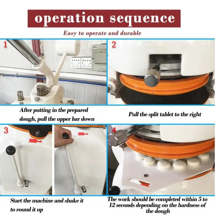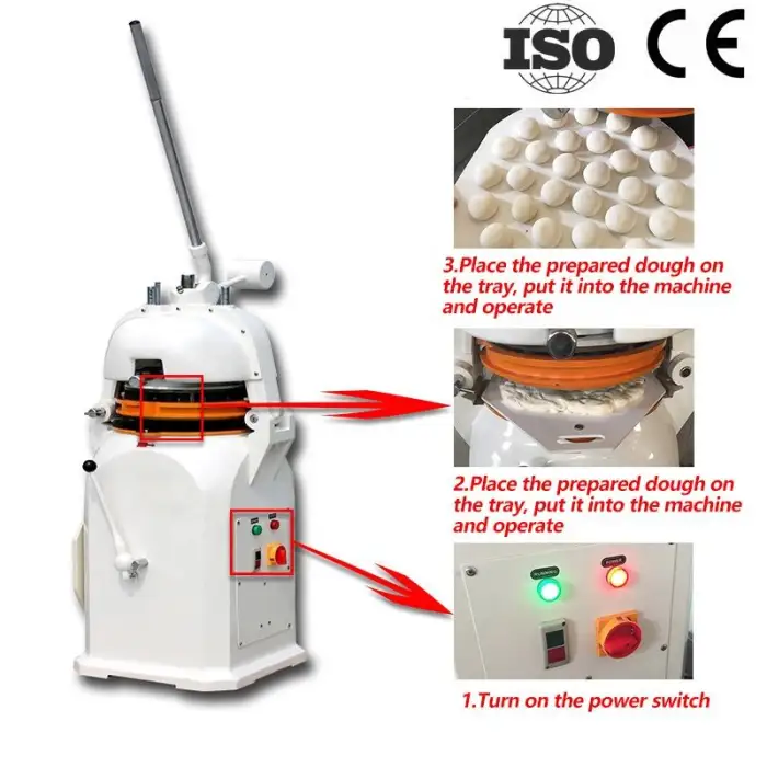 This machine is suitable for making buns, bread, pizza dough, and various other bakery products that require rounded dough.
