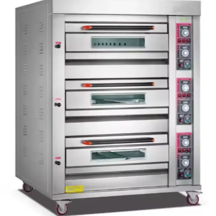 Regular cleaning and checking of gas connections are recommended for maintaining the oven's performance.