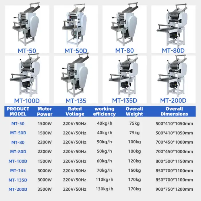 The machine has a production capacity of 40-130 kg per hour, allowing you to produce approximately 80 pieces of noodles per minute.