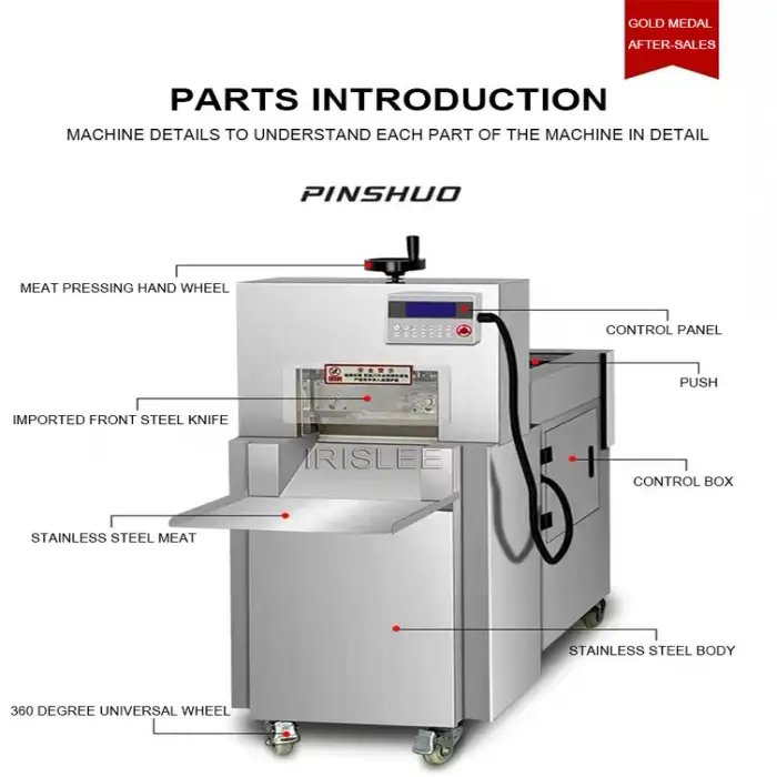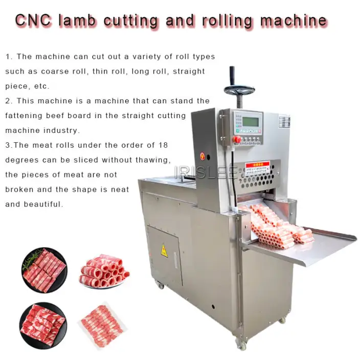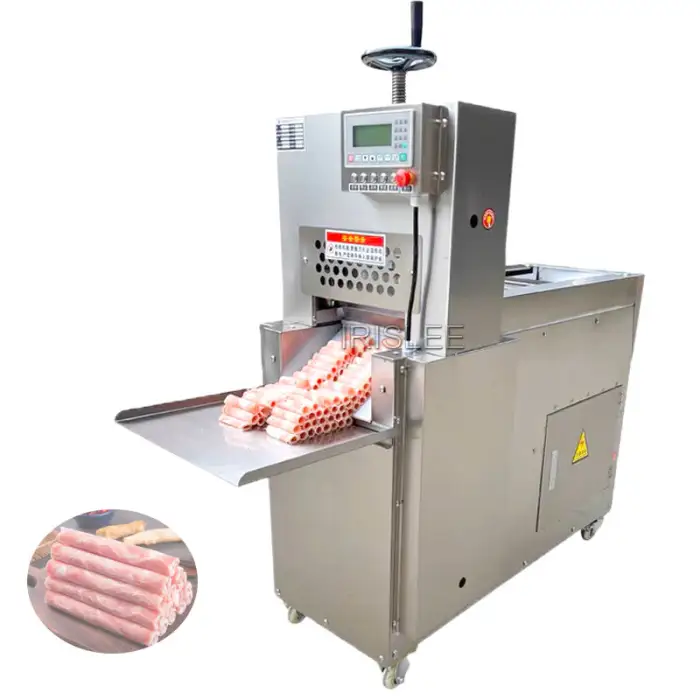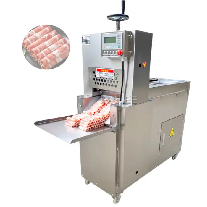 This machine is designed to slice both beef and mutton, making it versatile for various meat processing needs.