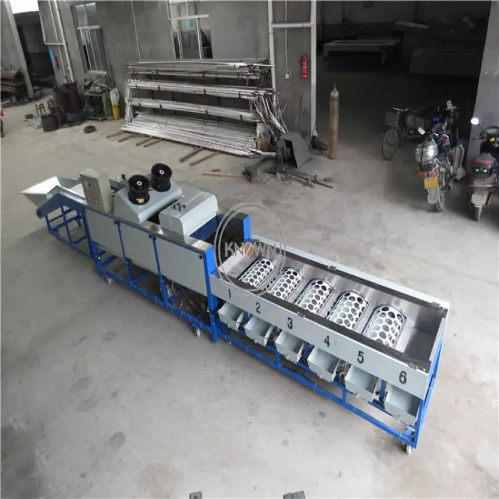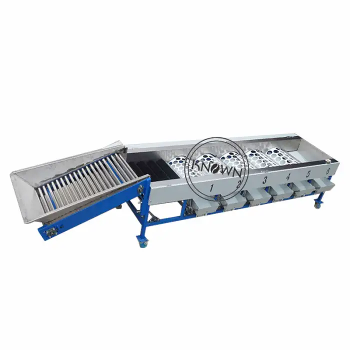 The machine is ideal for sorting grapes and lemons, washing vegetables, grading fruits for quality control, and use in commercial kitchens and food processing plants.