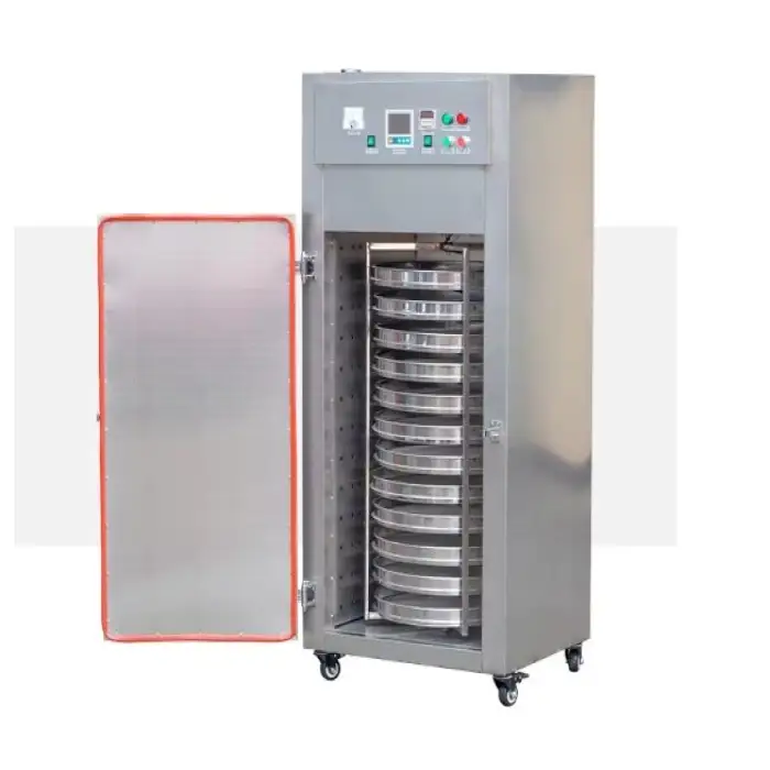 The dehydrator is constructed from durable stainless steel (SUS304), ensuring longevity and ease of cleaning.