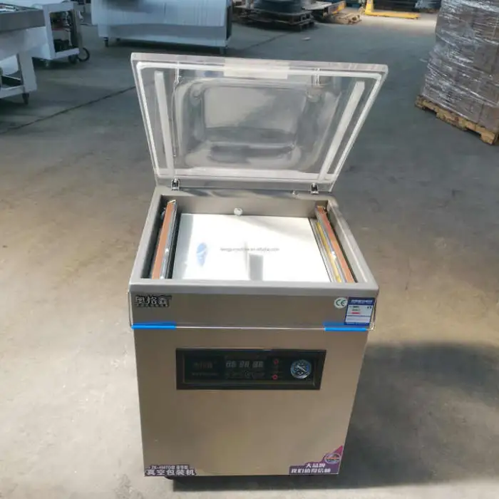 The machine is compatible with plastic pouches and bags for effective vacuum sealing.