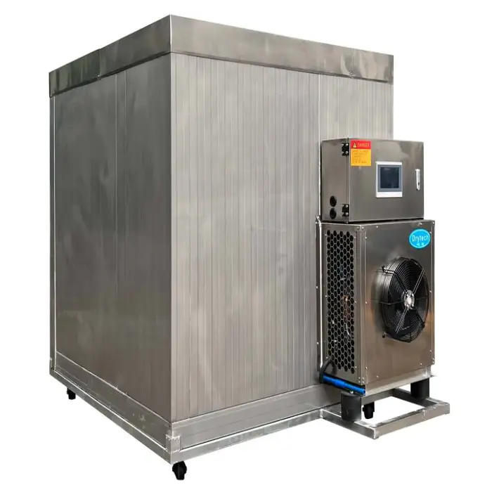 The Commercial Type Heat Pump Potato Dryer is made of high-quality stainless steel, ensuring durability and longevity.