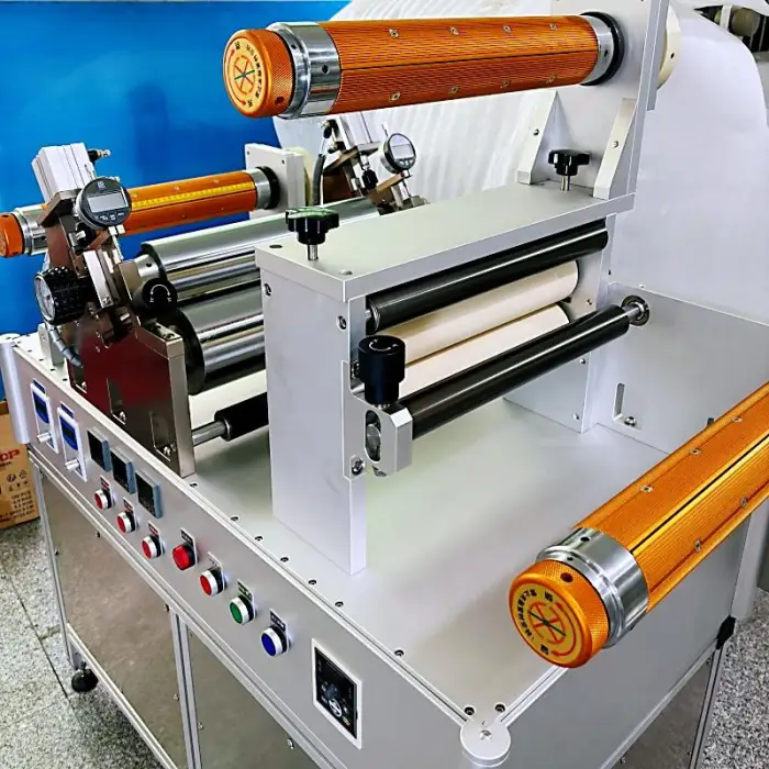 The Compact Digital Roll-to-Roll Melt Adhesive Coater operates on multiple voltage options: 220 V, 110 V, and 380 V.