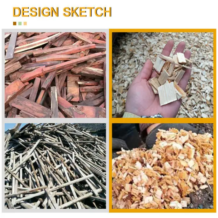 The Comprehensive Wood Crusher can efficiently handle various materials, including furniture waste, wooden pallets, straw, grass, and wood branches.