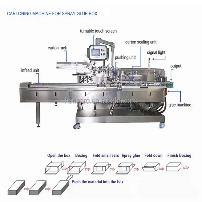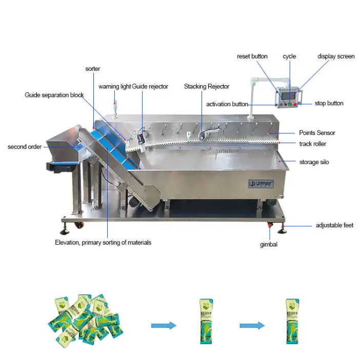 The machine is equipped with an advanced automation system that efficiently sorts products before packing them into cartons and bags.