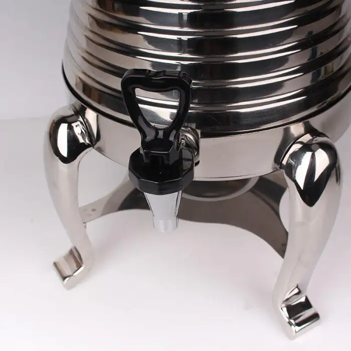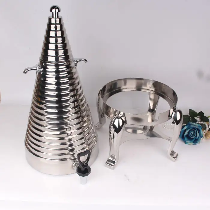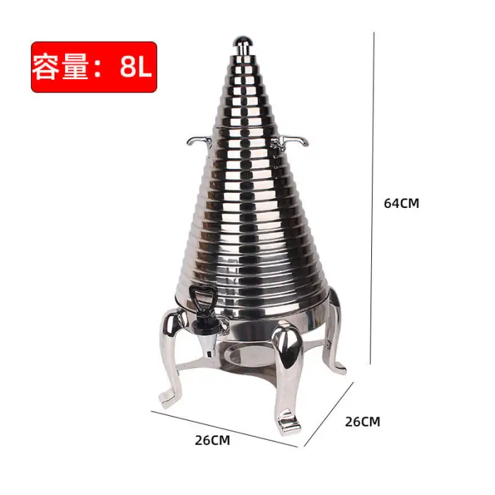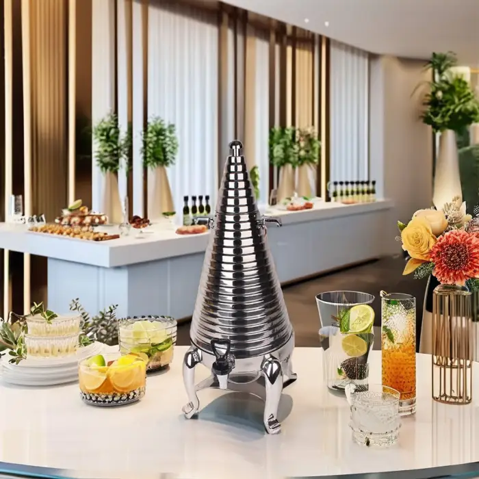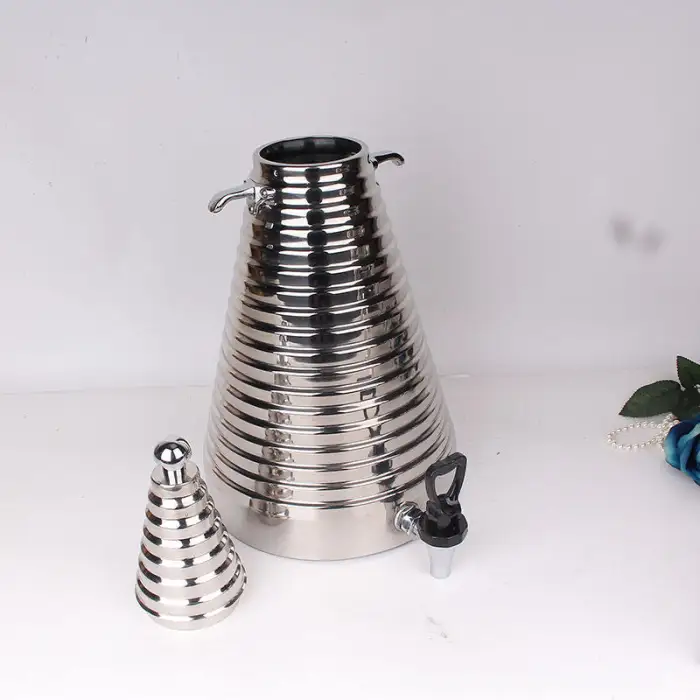 The Conical Beverage Dispenser is made from durable stainless steel, ensuring long-lasting use and easy maintenance.