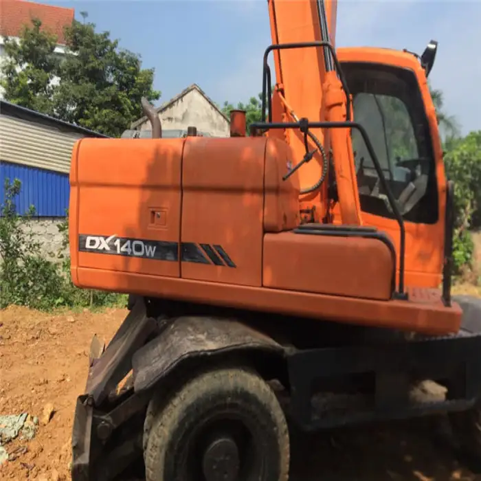 Key features of the DX140W include a fully hydraulic system, compact design for easy maneuverability, and a powerful engine for efficient digging and lifting.