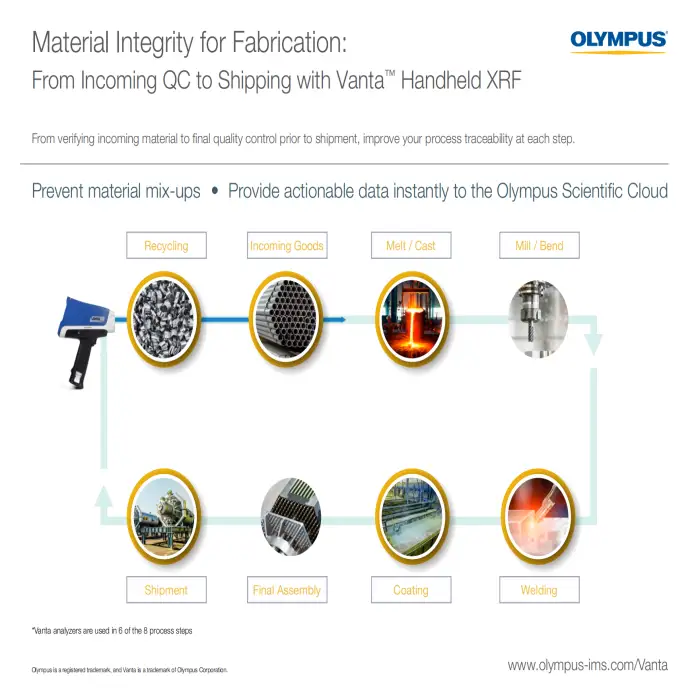 The main function of the Olympus VANTA Handheld XRF Analyzer is to perform on-site testing for metal analysis, material identification, and environmental testing using X-ray fluorescence technology.