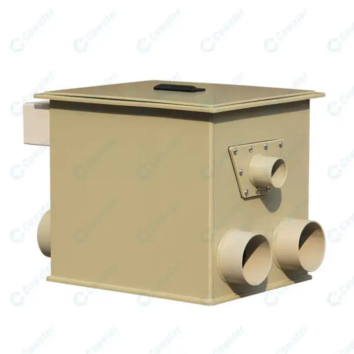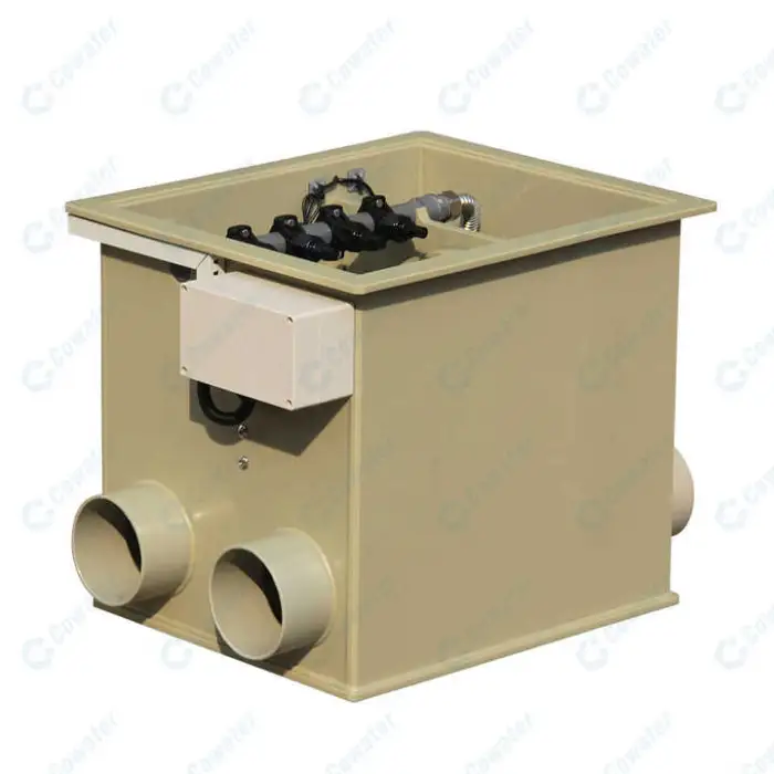 The sewage outlet size of the Cowater Rotary Drum Filter is 63mm.