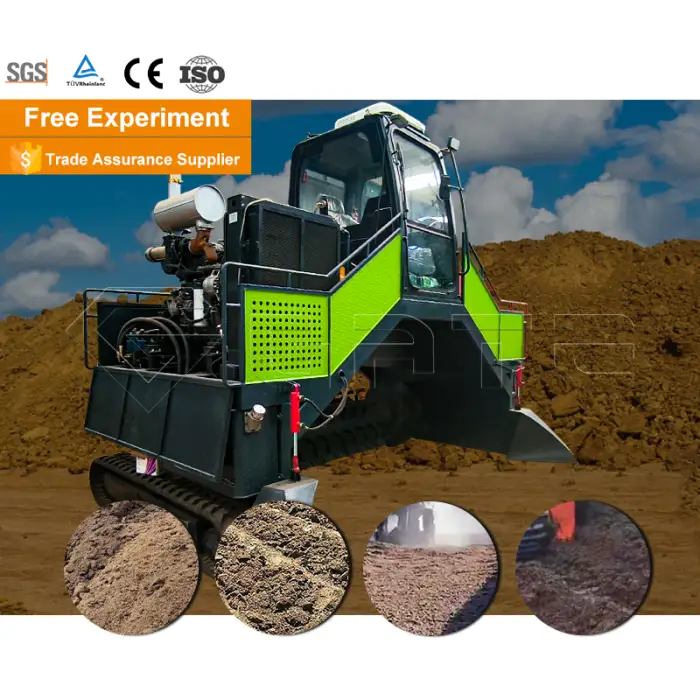 The Crawler Type Compost Turner features a high capacity, adjustable working width, low noise operation, and a durable design, making it suitable for both large and small-scale composting.