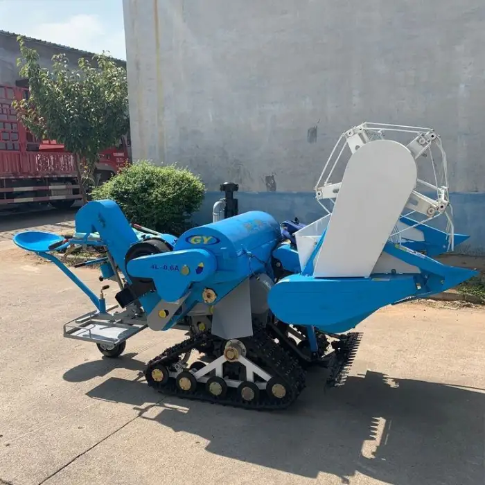 The Crawler-type Miniature Small Combine Harvester is designed to efficiently harvest rice, wheat, and corn.