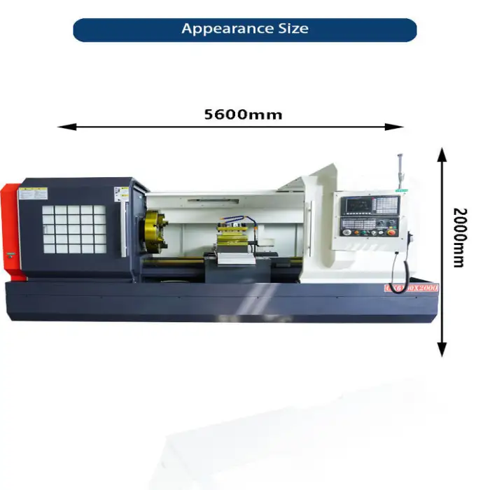 The dimensions of the CK6180 lathe are 4400 mm in length, 2000 mm in width, and 2000 mm in height.