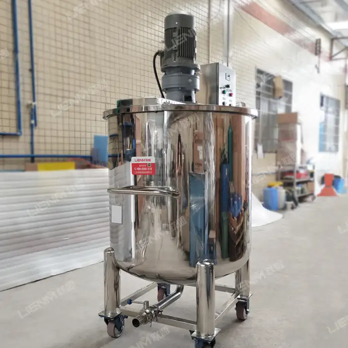 Industries such as personal care, household cleaning, and cosmetics can benefit from using this mixer for their liquid product manufacturing.