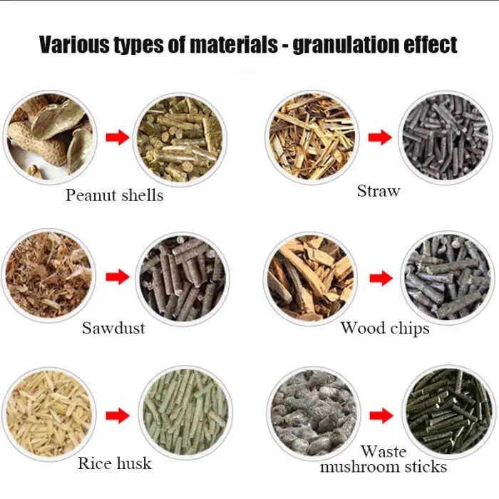 The Customized Wood Pellets Line Wood Sawdust Biomass Pellet Briquette Machine can handle various raw materials including wood sawdust, grass, and straw.