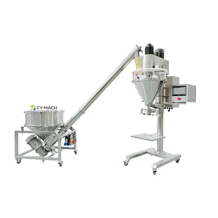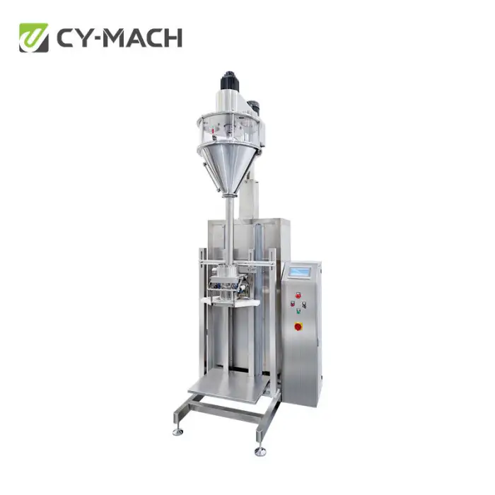 The CY-MACH machine can fill various powders and granules, including salt, flour, corn starch, milk powder, rice, and other grains.