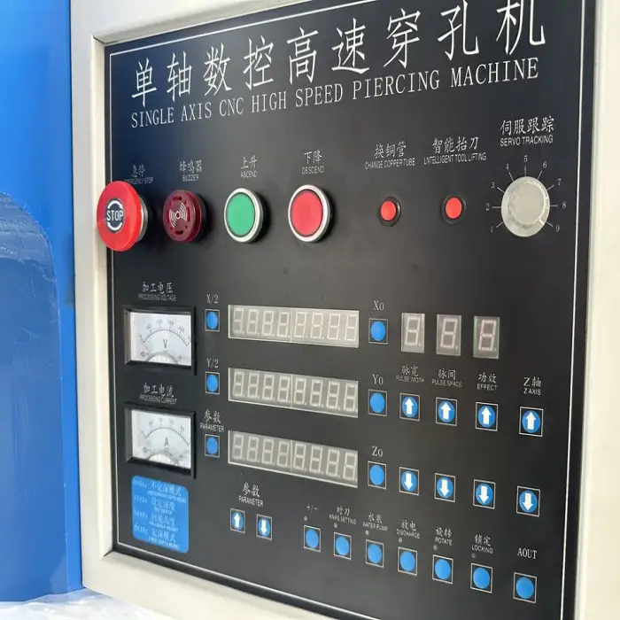 This machine is designed to create small holes in various materials, making it suitable for precision machining tasks in metals, plastics, and composites.