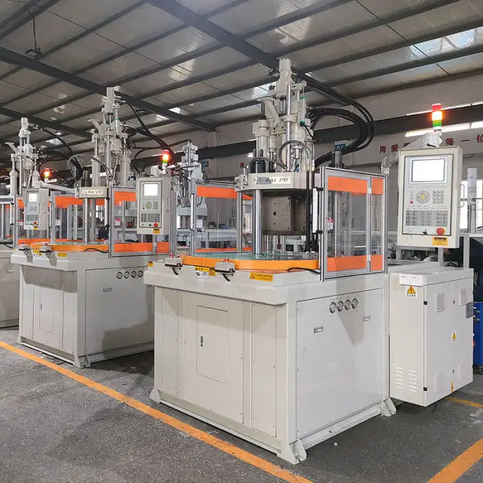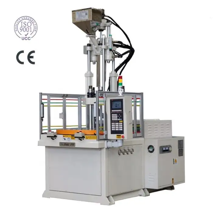 This machine utilizes vertical injection molding, which is ideal for producing small plastic items like dental floss.