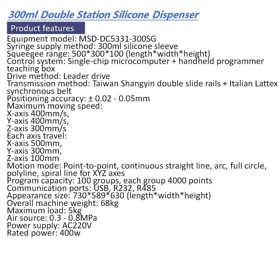 Fast dispensing speed of up to 400 mm/s.