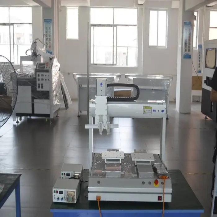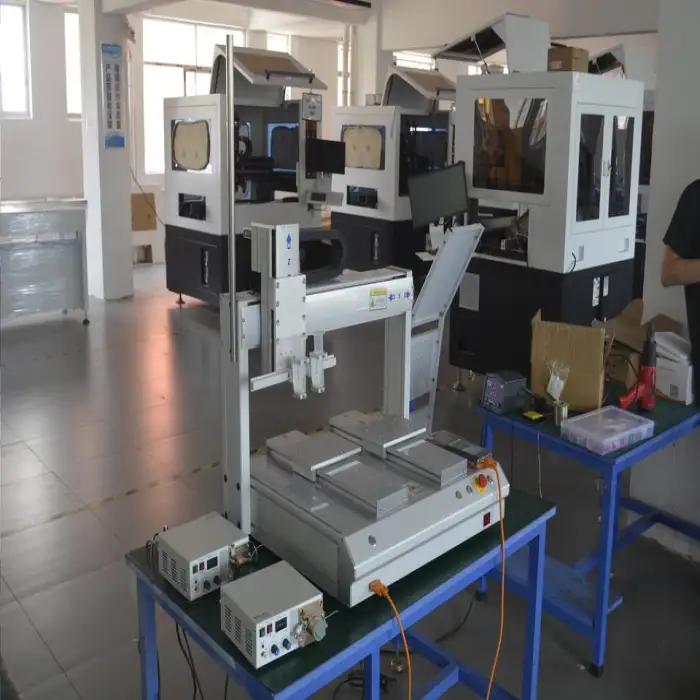 Key features include high precision glue dispensing, an efficient three-axis robot system, low operational costs, fast and reliable performance.