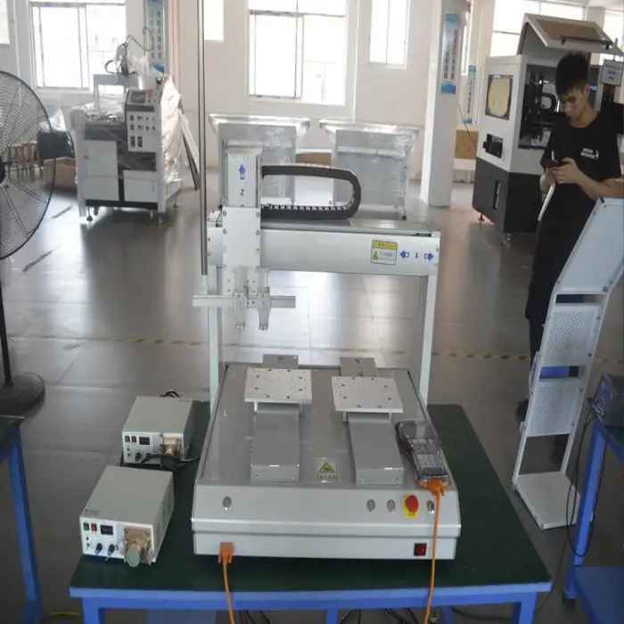 The machine is designed for high precision glue dispensing, ensuring accuracy in application.